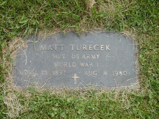TURECEK Helen/1900 - 1993 Matt/1897 - 1980 Matt TURECEK/Mus US Army/World War I/Dec 15 1897 - Aug 8 1980 |